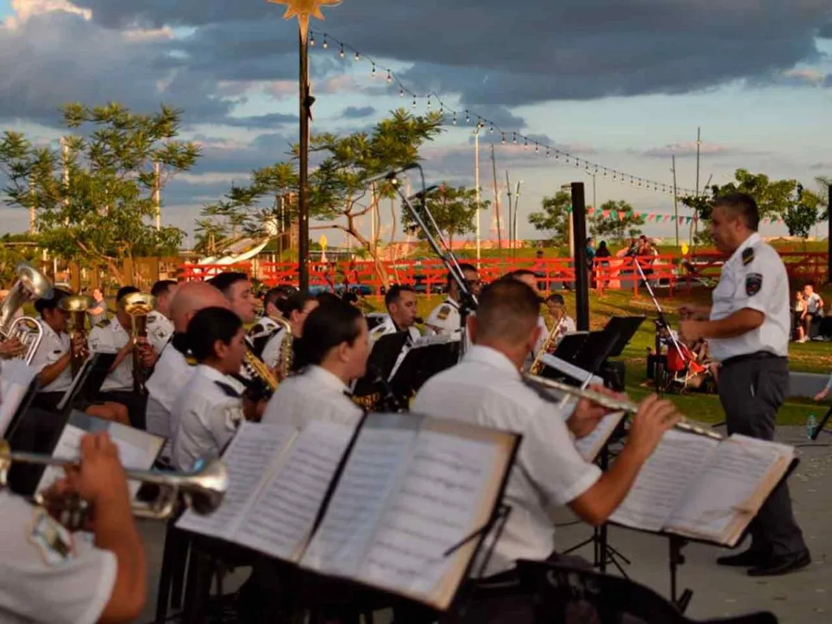 La Banda de Música del Servicio Penitenciario Provincial brindó una retreta navideña en el Parque de las Fiestas de Posadas, un evento que cerró el año con una explosión de alegría y esperanza. La velada comenzó con una encantadora presentación de los niños del jardín maternal Manitos Celestes acompañados de canciones navideñas.