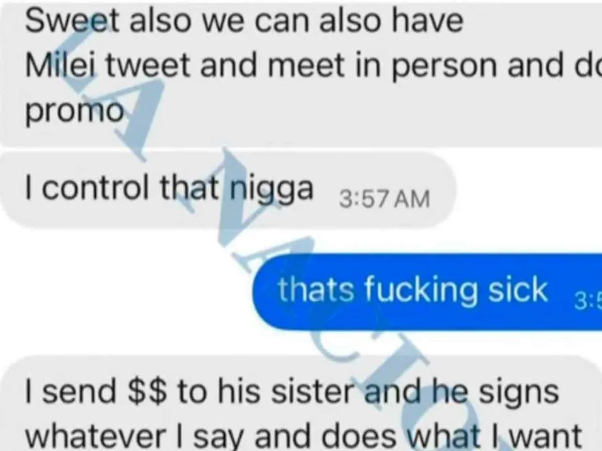 Según sostuvo el empresario dueño de $LIBRA, Davis, con su alarde de que “le pago a su hermana, le envió dólares a su hermana, y controlo a Javier Gerardo Milei”, tratándolo de “negro esclavo” al Presidente Javier Gerardo Milei, en sus diálogos.