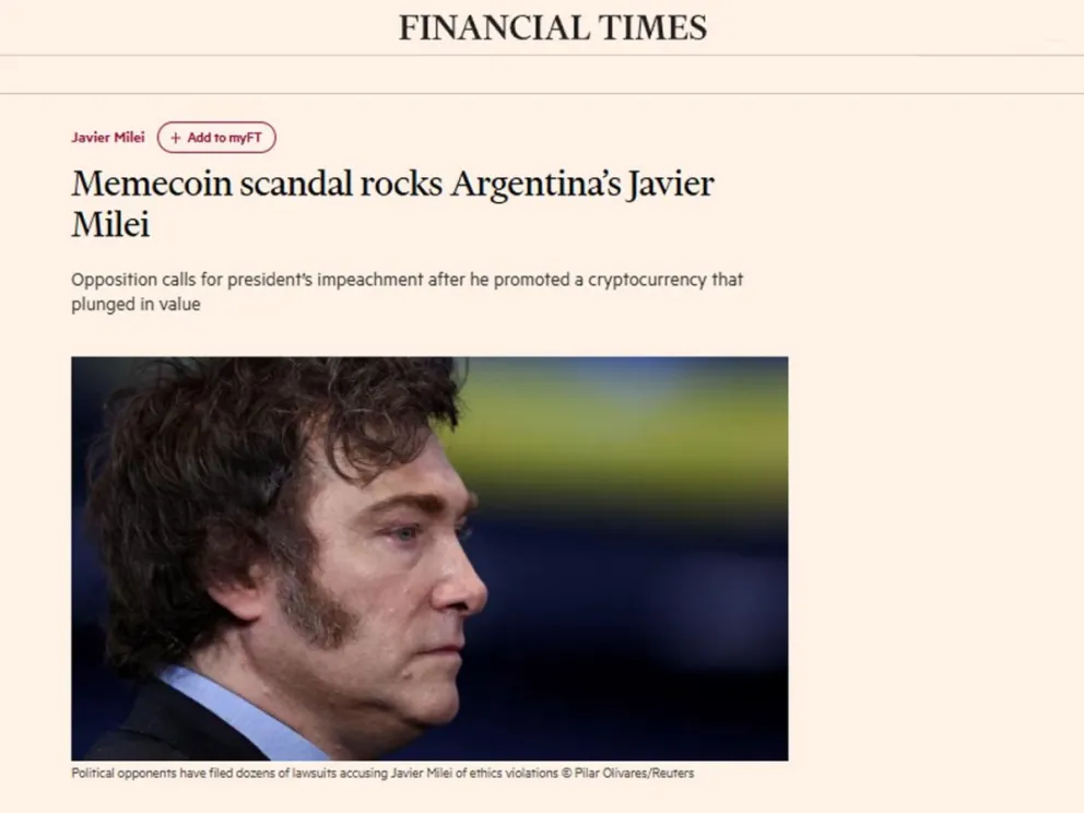 Duro editorial del Financial Times sobre Javier Milei por el escándalo de $LIBRA