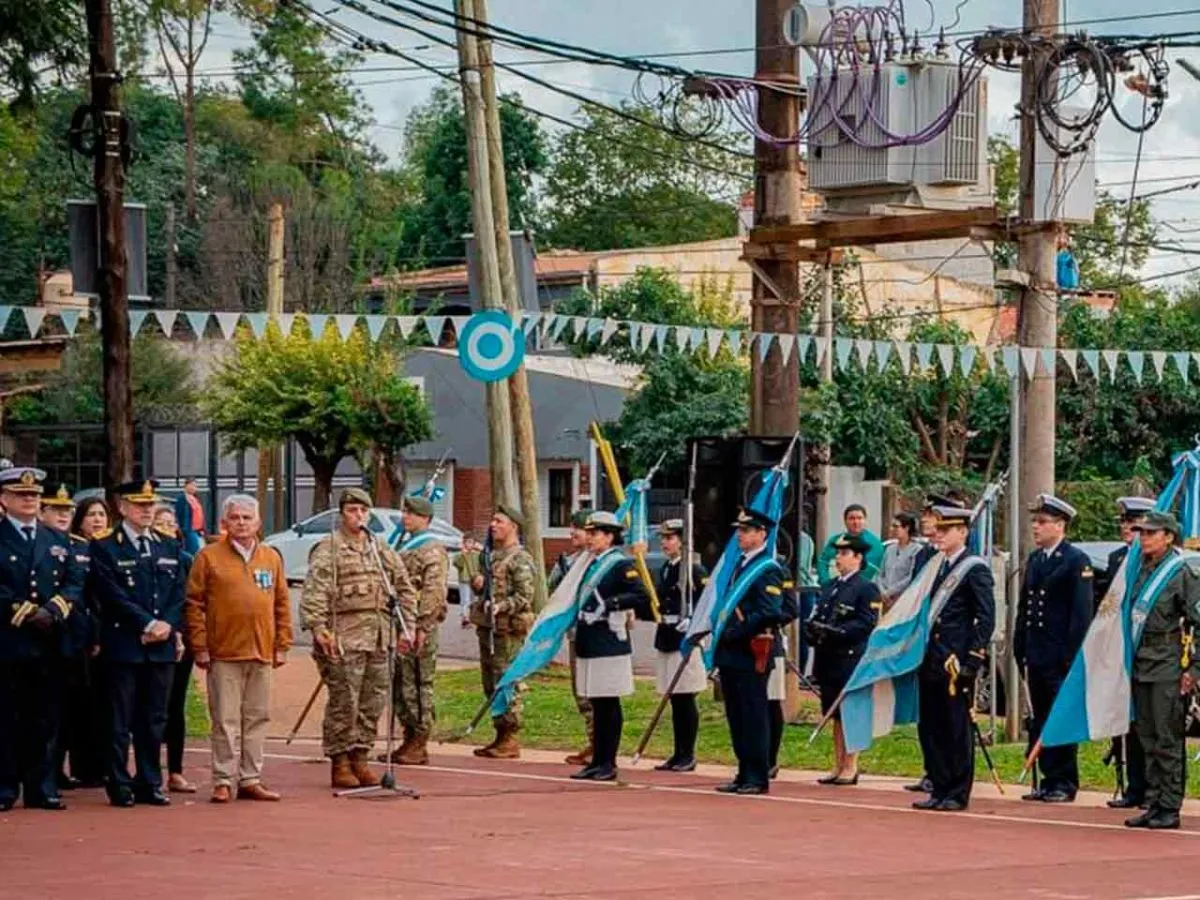 Además del centenar de vecinos que se acercaron a compartir el acto patrio, también estuvieron los abanderados y escoltas de la Agrupación 25 de Mayo, representantes del Comando de la XII Brigada de Monte, del Liceo Naval Militar "Almirante Storni", de la Escuela Nº 356, y de la Escuela Especial Nº 4.