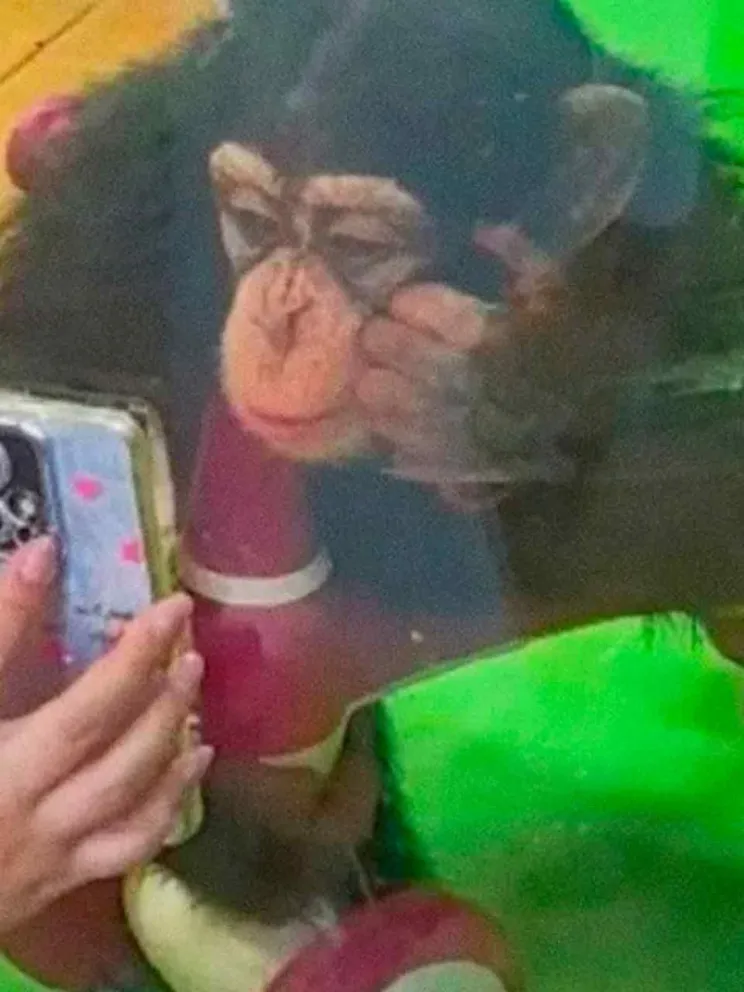 El animal, conocido como Ding Ding, desarrolló el hábito de ver videos cortos que los visitantes del parque se acercaban a mostrarle. El zoológico de Shanghái (China) se ha vuelto viral luego de colocar un cartel que prohíbe a sus visitantes mostrar videos desde su celular a un pequeño chimpancé de dos años de edad, informa este lunes South China Morning Post. El animal, conocido como Ding Ding, desarrolló el hábito de ver videos cortos que los visitantes del parque le mostraban y ahora sus cuidadores están preocupados por los efectos nocivos que le hayan podido causar a su visión.  "Si un chimpancé no puede ver con claridad y no puede comunicarse con los humanos, puede volverse ansioso y provocar problemas de salud", declaró uno de los trabajadores del parque. Ante las preocupaciones sobre la salud física y psicológica del animal, las autoridades del zoológico decidieron colocar un particular cartel para los visitantes del parque donde sugieren no mostrar el celular al bebé chimpancé. Según uno los cuidadores del zoológico, Ding Ding no podría usar gafas en caso de presentar problemas de vista. A pesar de las medidas del parque, se ha dado a conocer que no hay sanciones para aquellos que ignoren la singular prohibición.