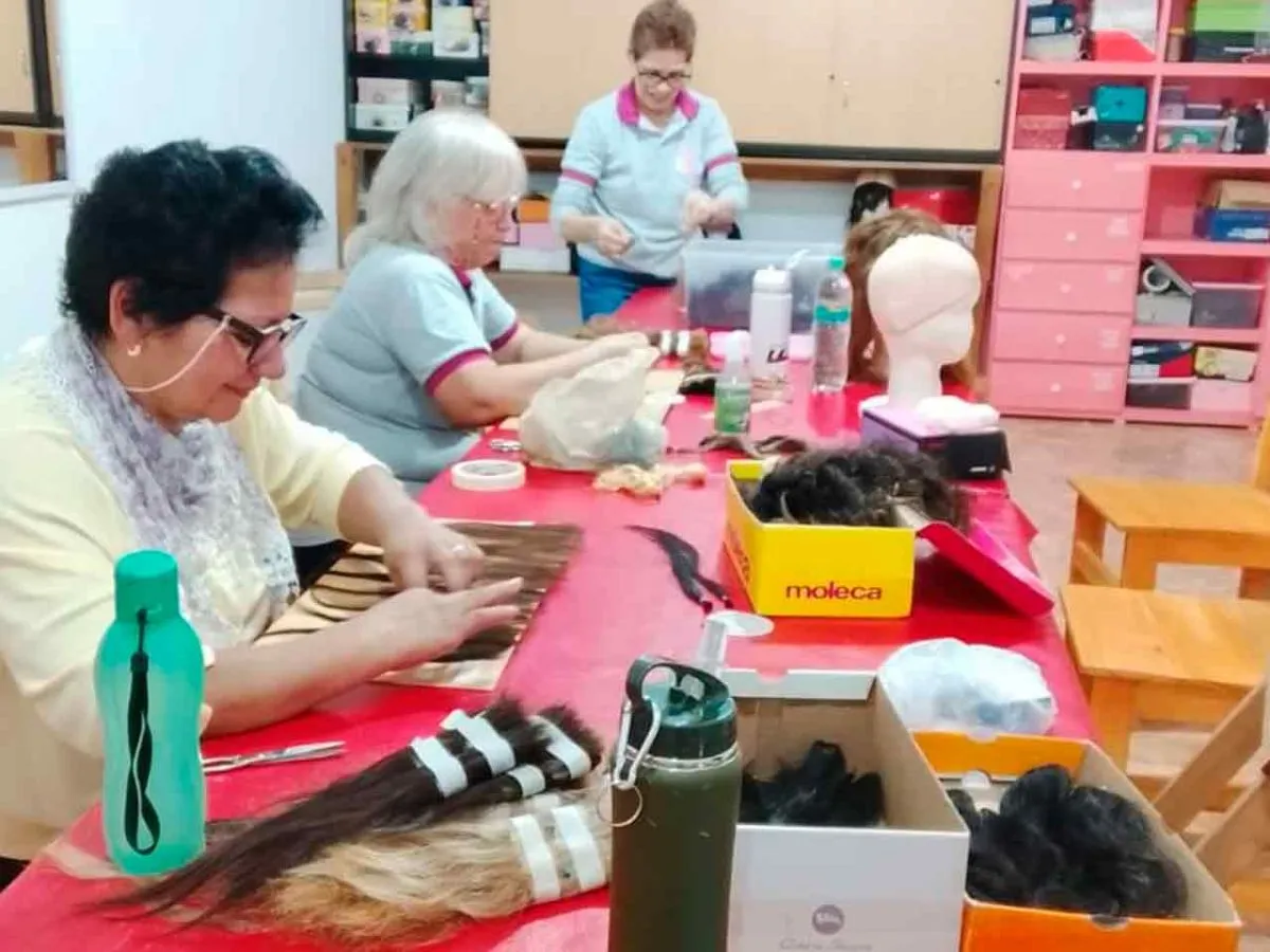 El taller de “Mechones de Vida”, funciona en la Parroquia Santa Rita de Oberá, donde todos los días miércoles el grupo se reúne de 16:00 a 19:00  para recibir donaciones de cabello, y llevar a cabo toda la tarea siguiente al corte de los mechones. Este fantástico grupo humano está compuesto actualmente por once mujeres, que subsisten en su tarea gracias a la inmensa colaboración de una comunidad caritativa, que les dona todos los materiales para que las pelucas se hagan. El taller recibe personas de toda la Provincia, hombres mujeres y niños, que al llegar, si encuentran pelucas en stock que les sirvan, ya se las prueban y se las pueden llevar puestas, o en caso de no haber, se les toman las medidas para la futura confección. En dialogo con Noticias de la Calle, una de las referentes del grupo llamada Estela, contó que ellas realizan esta tarea solidaria con mucha dedicación y que no podrían medir la gratificación que sienten al ver las sonrisas de las personas que consiguen su peluca y logran mejorar el momento de vida tan complejo que les está tocando atravesar. Asimismo, Estela hace un llamado a la comunidad en general a donar pelo, ya que la demanda de pedidos es muy grande y lo que más les hace falta para continuar haciendo que el proyecto crezca son los mechones de pelo. No es necesario donarlo todo, una colita de pelo ya suma. Cabe destacar que mañana se llevará a cabo una pizzeada solidaria en el Club AEMO de Oberá, con el fin de recaudar fondos para un viaje a la provincia de San Luis, donde la agrupación asistirá a una capacitación para aprender nuevas técnicas y poder brindar un mejor servicio.