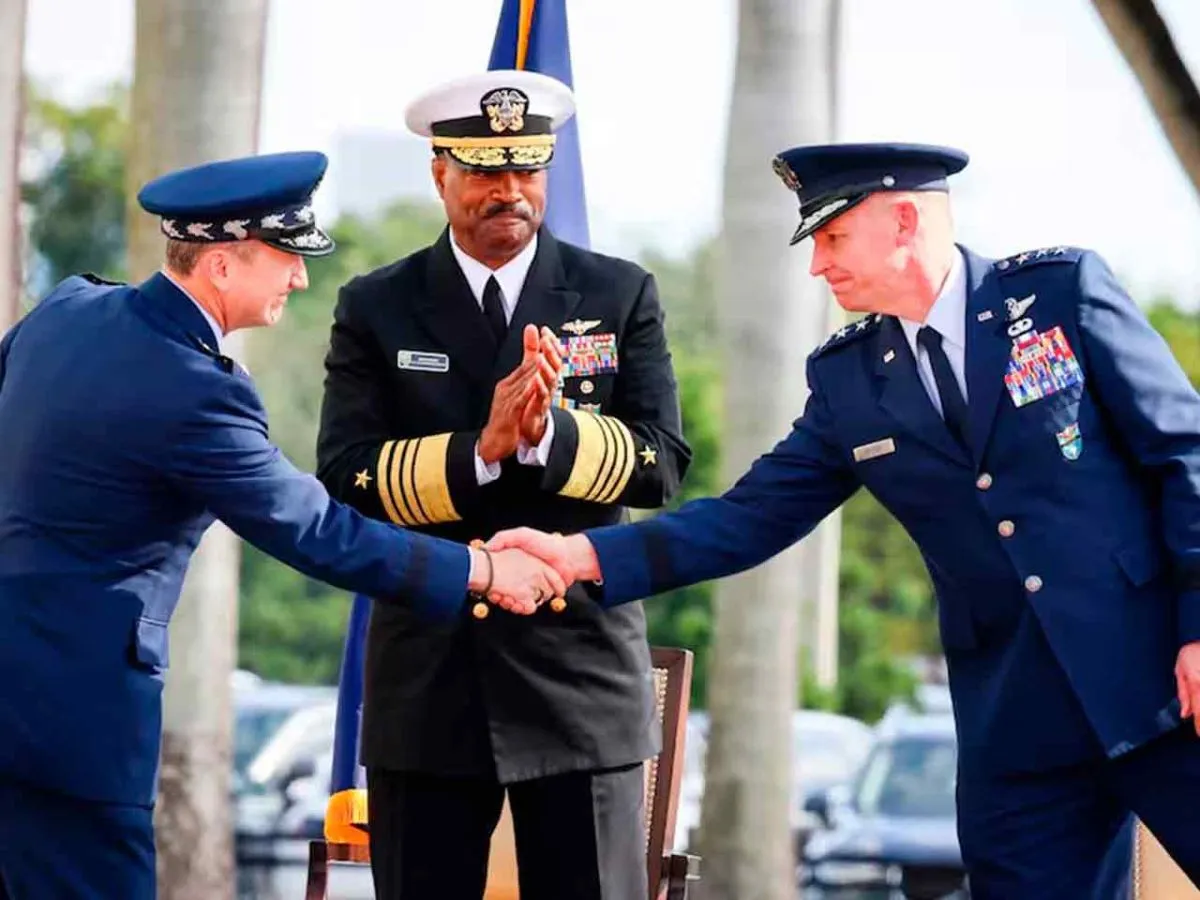 El viernes se le dio una baja anticipada en su condición de Jefe del Comando Sur de EE.UU., al almirante Alvin Holsey, quien presuntamente se enfrentó con el Secretario de Defensa, Pete Hegseth, por la legalidad de los ataques militares estadounidenses en el Caribe, se retiró oficialmente el viernes en una ceremonia en Florida, donde entregó las riendas del mando a su segundo, el teniente general de las Fuerzas Aéreas, Evan Pettus. En la gráfica, quien aplaude es el Almirante Holsey, en tanto, quien asume la jefatura está a la derecha.