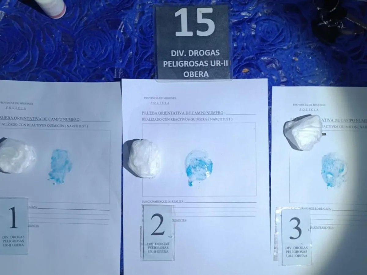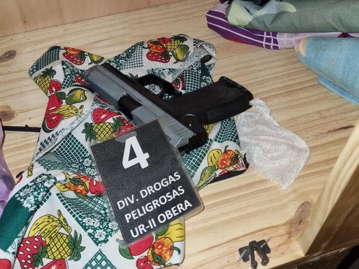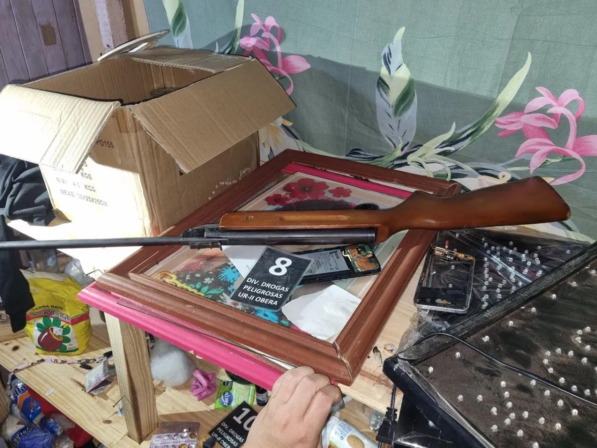 Drogas peligrosas  desarticuló un punto de venta de estupefacientes que funcionaba en una vivienda familiar de la zona norte de Oberá. En el lugar fueron detenidas dos mujeres, de 28 y 26 años, y demorados inicialmente un hombre y una mujer, quienes aparentemente se encontraban realizando la compra de estupefacientes. El procedimiento se realizó en un inmueble ubicado sobre calle Balcarce casi Fachinal. Al momento de la irrupción, con la presencia de la responsable del domicilio, se identificó a varias personas, entre ellas menores de edad. Durante la requisa se incautaron seis envoltorios de cocaína, un envoltorio de marihuana, 592.000 pesos, cuatro teléfonos celulares, dos motos utilizadas para la actividad ilícita, además de un rifle y una pistola réplica de aire comprimido. El aforo total de lo secuestrado fue estimado en 7.850.000 pesos.