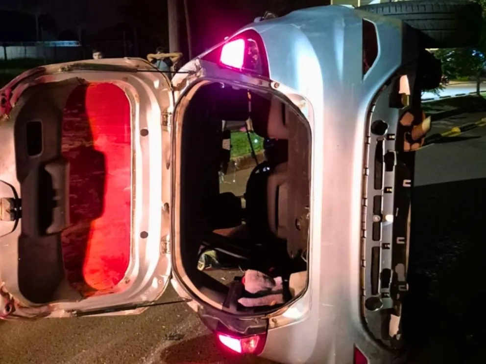 Colisionó contra un auto estacionado y volcó en Posadas