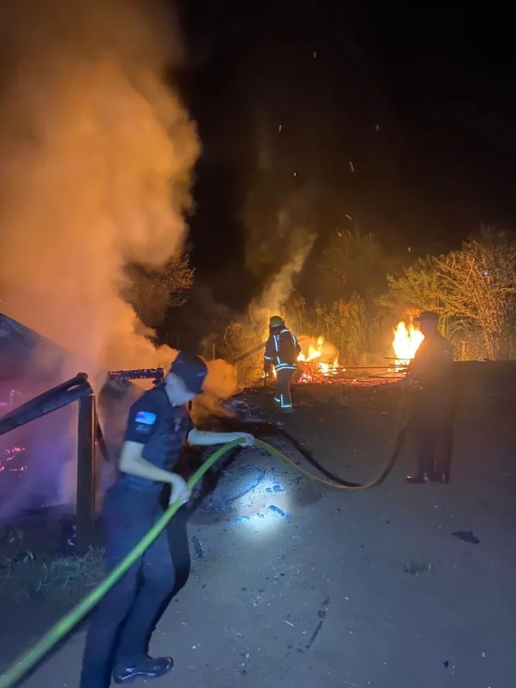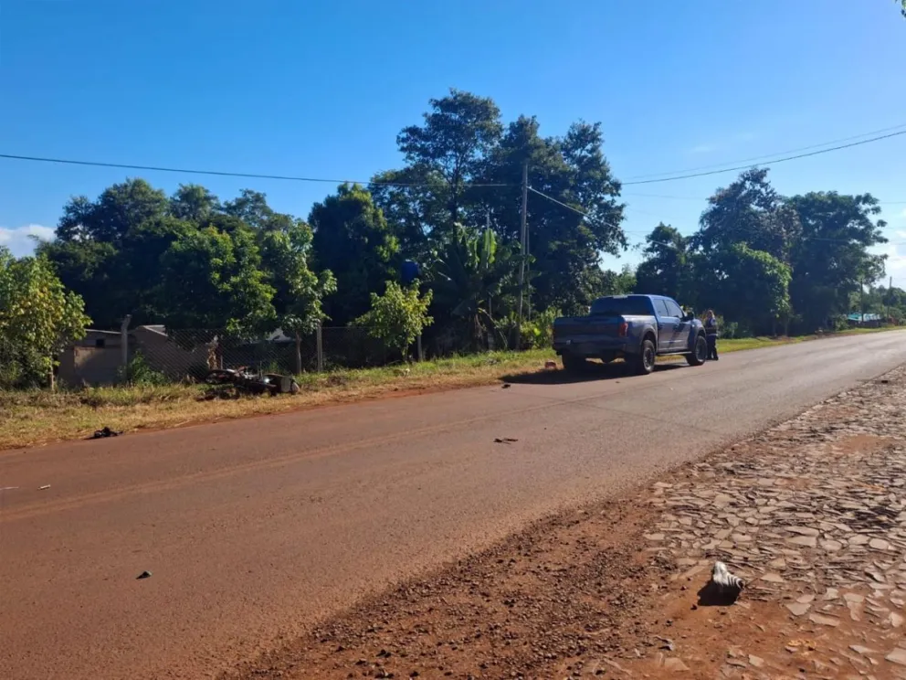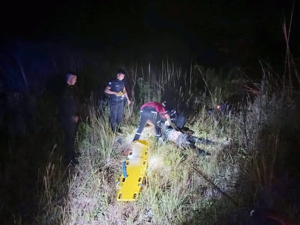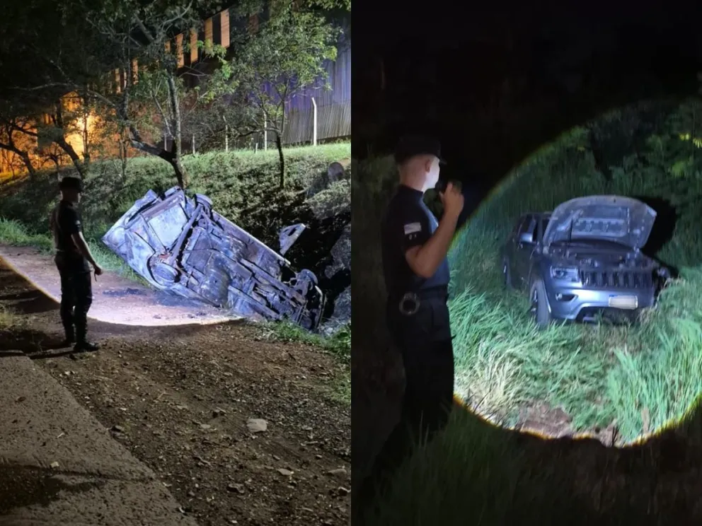 Tras el impacto, el Renault 12 despistó y comenzó a incendiarse, por lo que debieron intervenir los Bomberos Voluntarios de Montecarlo para sofocar las llamas.
