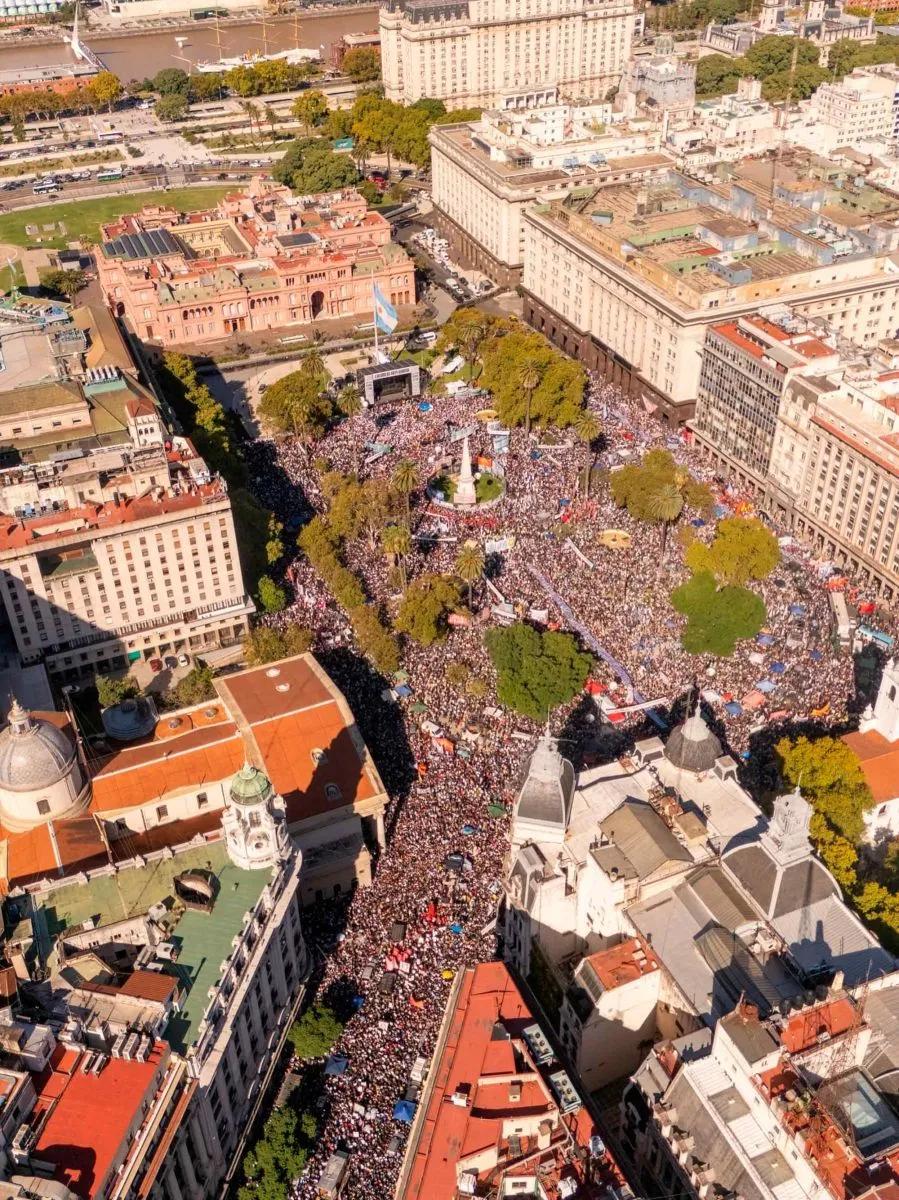 Centenares de miles de argentinos salieron a las calles militantemente a expresar su rechazó a un pasaje triste de nuestra historia, como siempre pero como nunca antes fue masiva la participación de la gente, que sumó su rechazo también fuertemente al Gobierno que encarna el presidente Javier Gerardo Milei y La Libertad Avanza, que han instalado en solamente dos años una situación de miseria excepcional e increíble a lo largo y ancho del País, con una presencia dominante de una opinión de condena a esta gestión nacional que tiene como paradigma más contundente de sus  acciones el incremento de la deuda externa de unos 100.000 millones de dólares en solamente 2 años habiéndola recibido en unos 360.000 millones de dólares estando hoy en 465.000 millones de dólares sin que este Gobierno nacional haya hecho un metro de asfalto, una escuela, una obra pública, haya inaugurado un hospital, en suma justifique con algo en que se gastó tamaña suma de dinero que sirve para rehacer a nuevo el País entero.