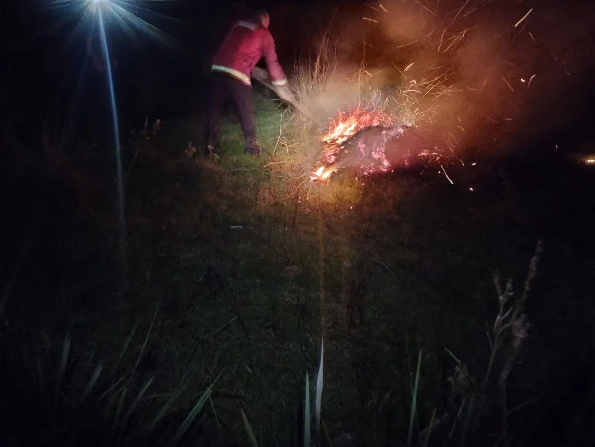 El hecho se registró cerca de las 00:35 sobre la Ruta Provincial N° 103, en inmediaciones del cementerio local, cuando se detectó un foco ígneo en una zona de vegetación.
