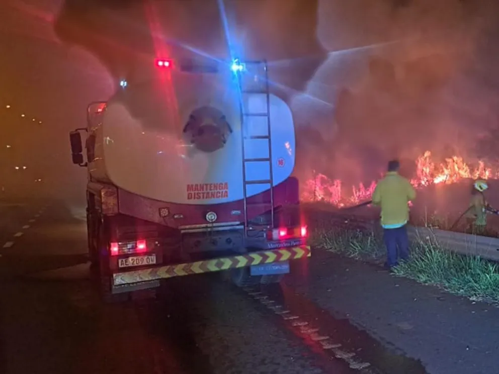 Voraz incendio de malezas en Guaraní: Consumió 2,5 hectáreas junto a la Ruta 14