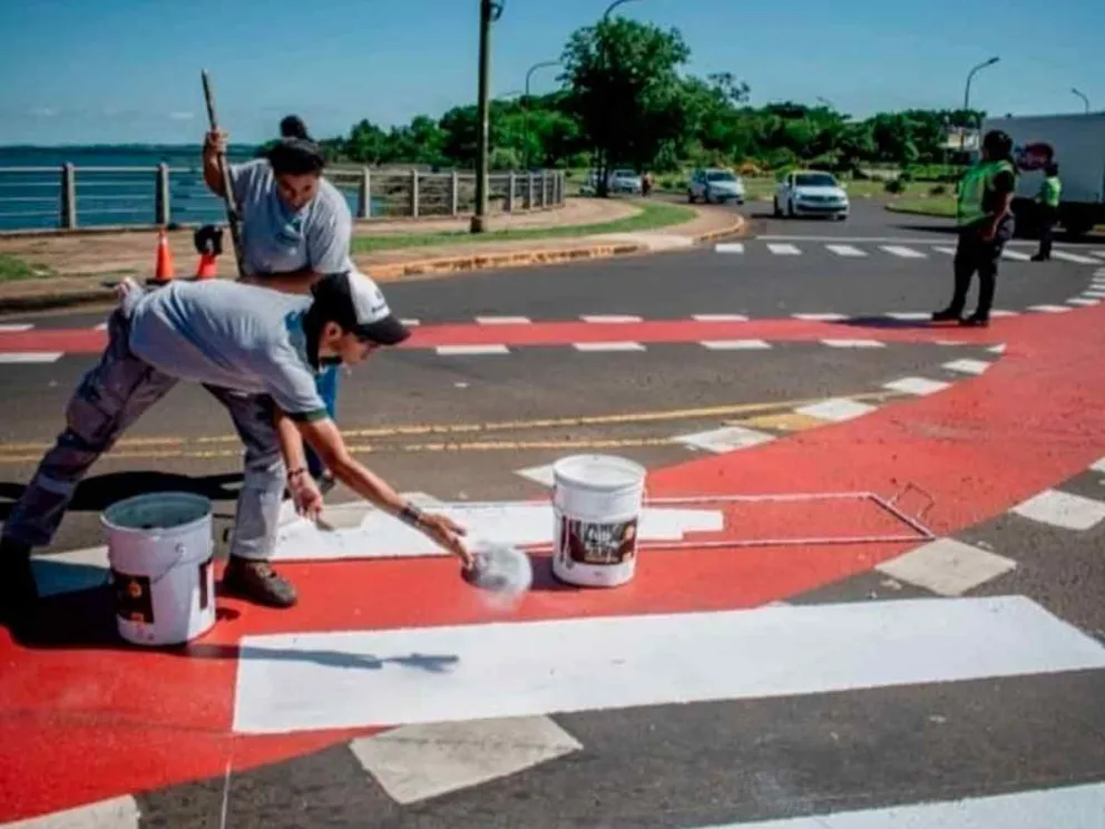 Demarcación de estacionamiento para motos y personas con discapacidad en la avenida Costanera de Posadas